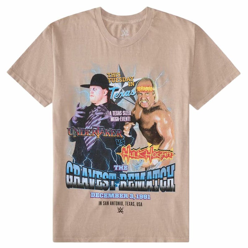 WWE ハルク・ホーガン アンダーテイカー Tシャツ 【現地買付】This Tuesday In Texas Relaxed Graphic T-Shirt Goodie Two Sleeves ベージュ