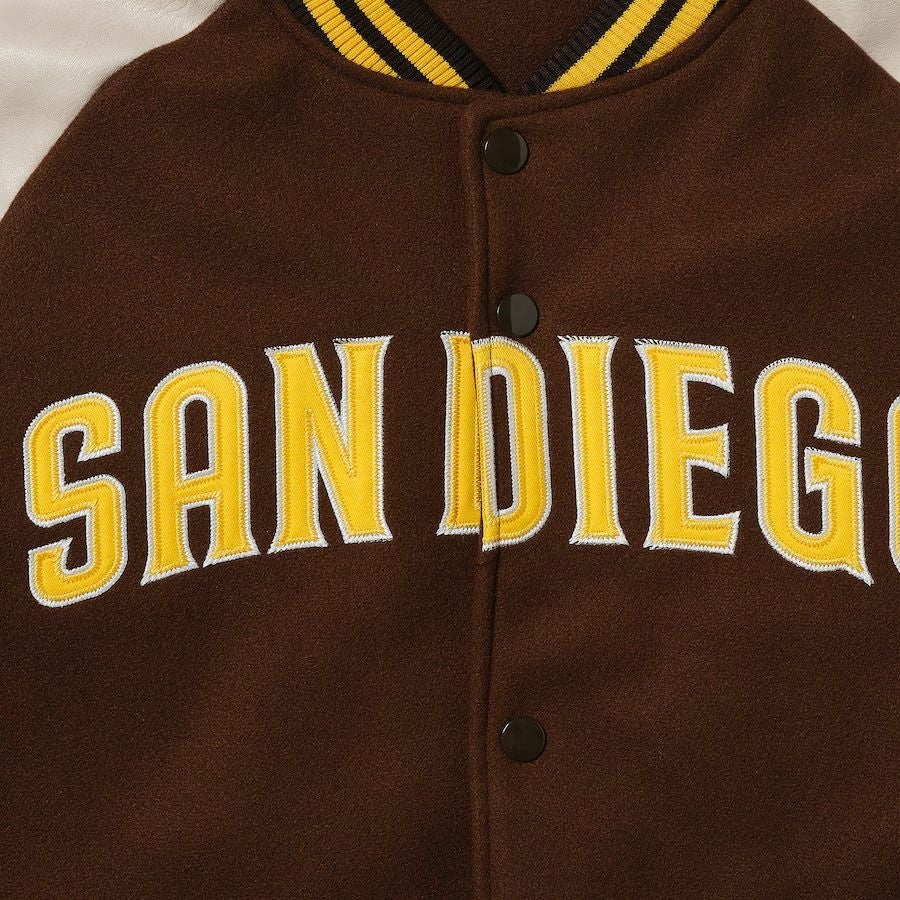 MLB x Fanatics メルトンジャケット MLB パドレス ジャケット Standardlogo PUメルトン Jacket スタジャン Fanatics ブラウン