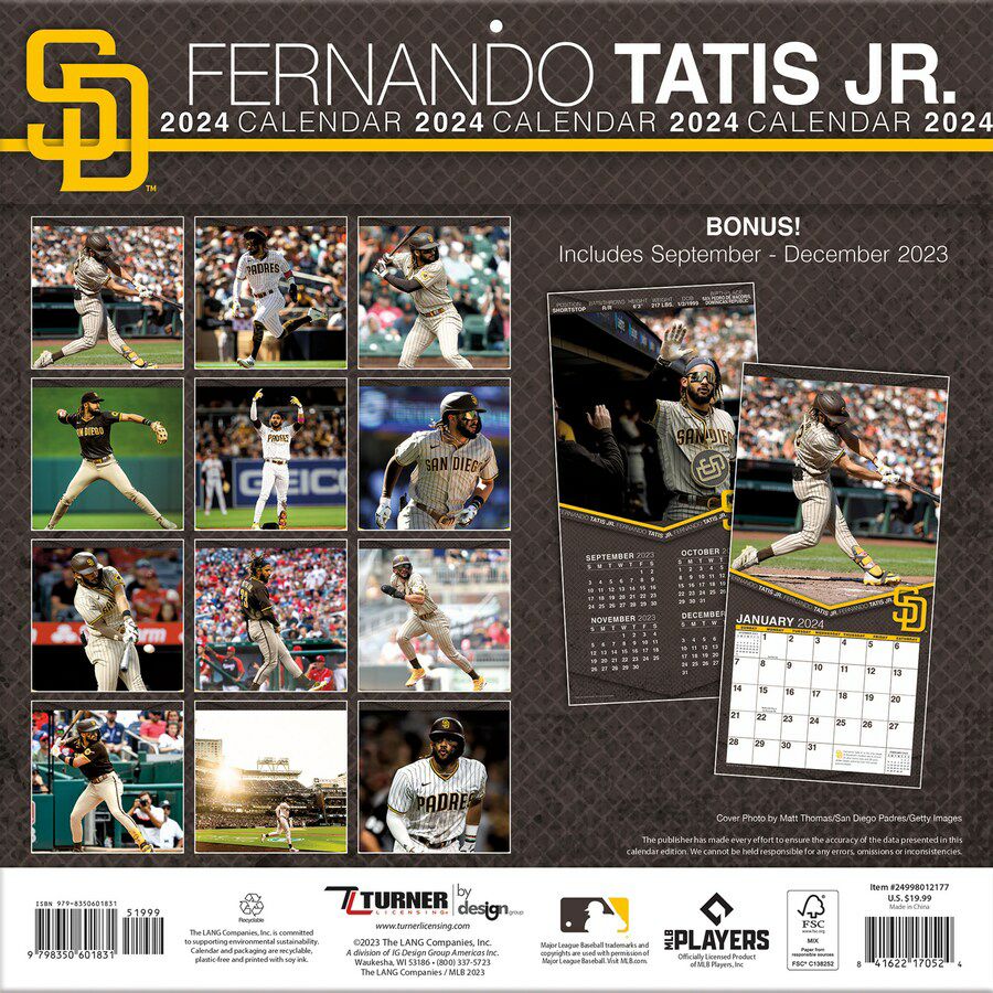 他の画像を見る MLB 2024年版 プレイヤー 壁掛けカレンダー MLB フェルナンド・タティスJr パドレス カレンダー 2024 Player 壁掛け Wall Calendar Turner ¥ 7,700 税込 在庫切れ カートに入れる お気に入りに登録する