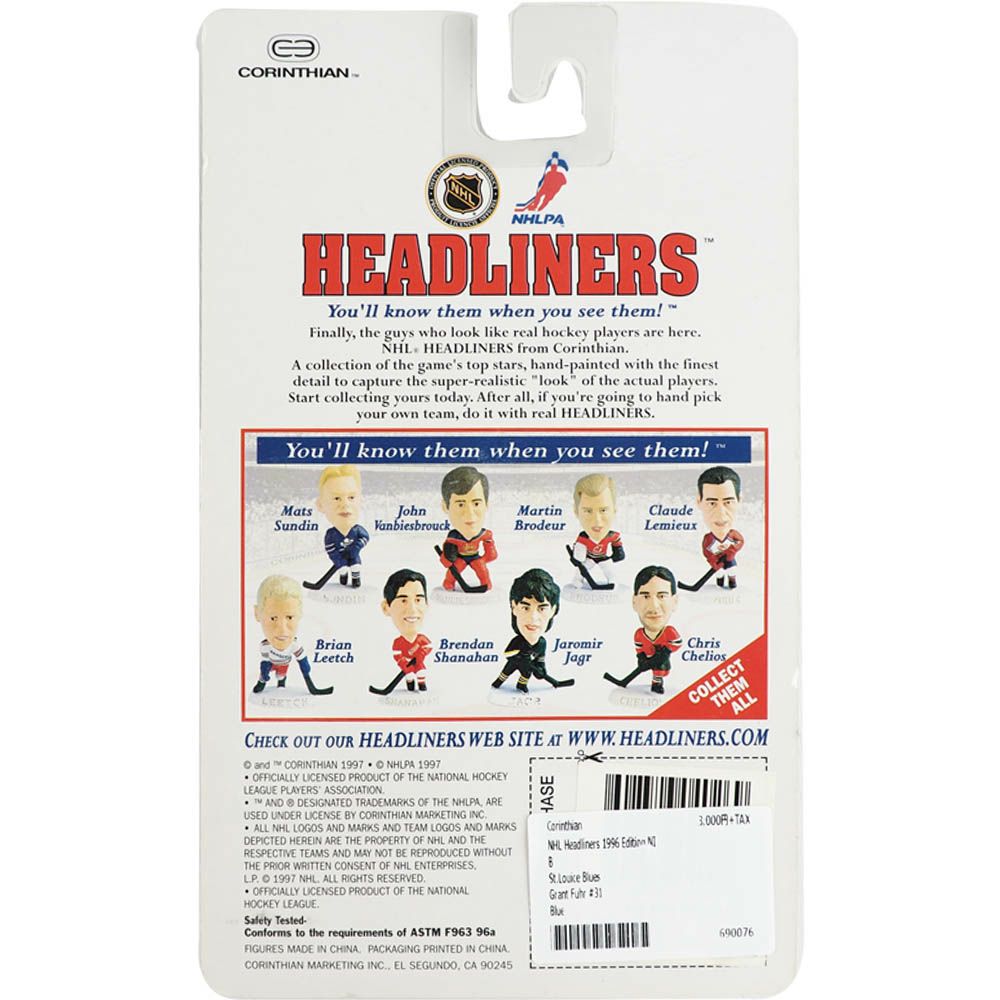 他の画像を見る 激レアアイテム!NHLスター選手のフィギュア! NHL グッズ NHL フィギュア グラント・ファー セントルイス・ブルーズ 1996 コリンシアン ¥ 3,300 税込 在庫切れ カートに入れる お気に入りに登録する