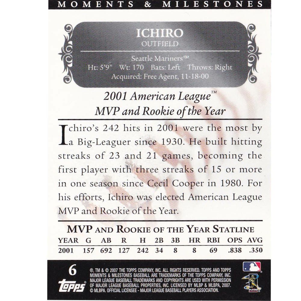 他の画像を見る 激レア!イチロー選手トレーディングカード! MLB イチロー マリナーズ トレーディングカード/スポーツカード 2001 ICHIRO AL MVP & ROOKIE OF THE YEAR 223HITS 136/150 (6) TOPPS ¥ 3,300 税込 在庫切れ 激レア!イチロー選手トレーディングカード! カートに入れる お気に入りに登録する