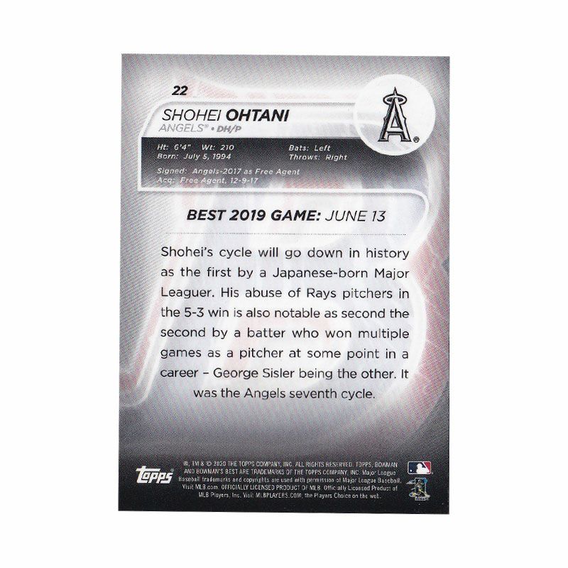他の画像を見る MLB エンゼルス 大谷翔平選手トレーディングカード MLB 大谷翔平 エンゼルス トレーディングカード 2020 Bowman's Best #22 Topps ¥ 3,300 税込 在庫切れ カートに入れる お気に入りに登録する
