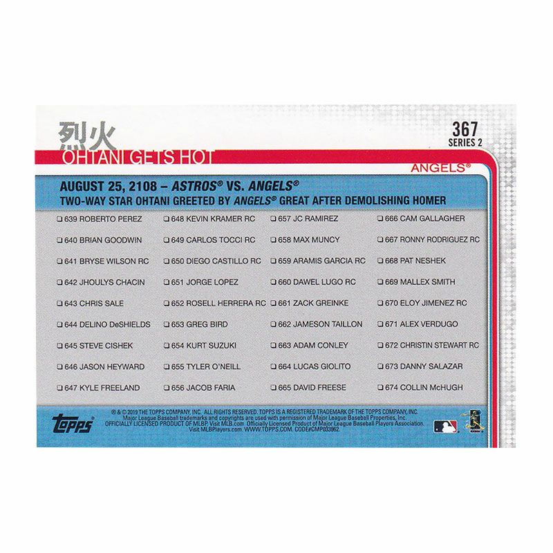 他の画像を見る MVPコンビ!MLB エンゼルス 大谷翔平選手 トラウト選手カード MLB 大谷翔平 トラウト エンゼルス トレーディングカード 2019 Series 2 Card #367 烈火 Topps ¥ 3,850 税込 在庫切れ カートに入れる お気に入りに登録する