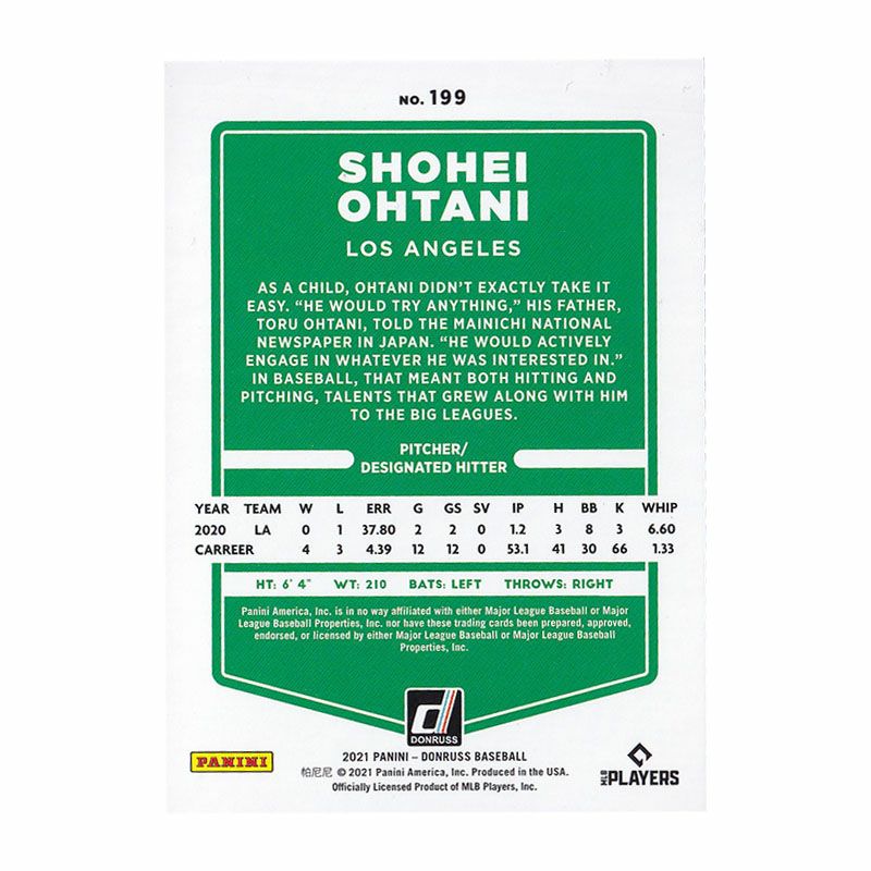 他の画像を見る MLB エンゼルス 大谷翔平選手トレーディングカード MLB 大谷翔平 エンゼルス トレーディングカード 2021 Donruss #199 Panini ¥ 3,300 税込 在庫切れ カートに入れる お気に入りに登録する