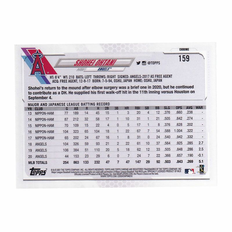 他の画像を見る MLB エンゼルス 大谷翔平選手トレーディングカード MLB 大谷翔平 エンゼルス トレーディングカード 2021 Chrome Base #159 Topps ¥ 3,300 税込 在庫切れ カートに入れる お気に入りに登録する