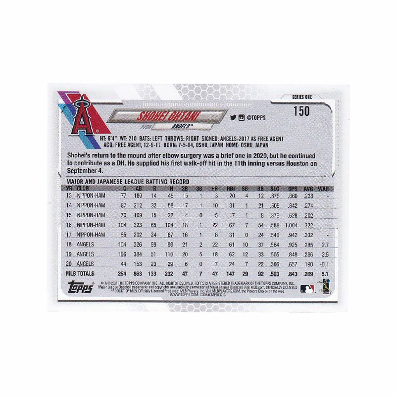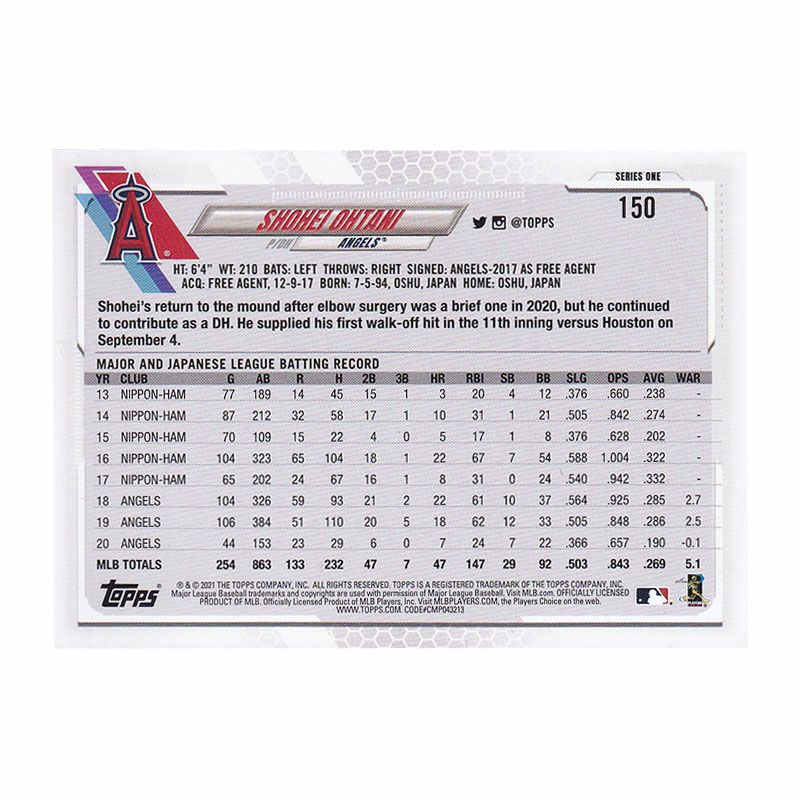 他の画像を見る MLB エンゼルス 大谷翔平選手トレーディングカード MLB 大谷翔平 エンゼルス トレーディングカード 2021 Series 1 #150 Topps ¥ 3,300 税込 在庫切れ カートに入れる お気に入りに登録する