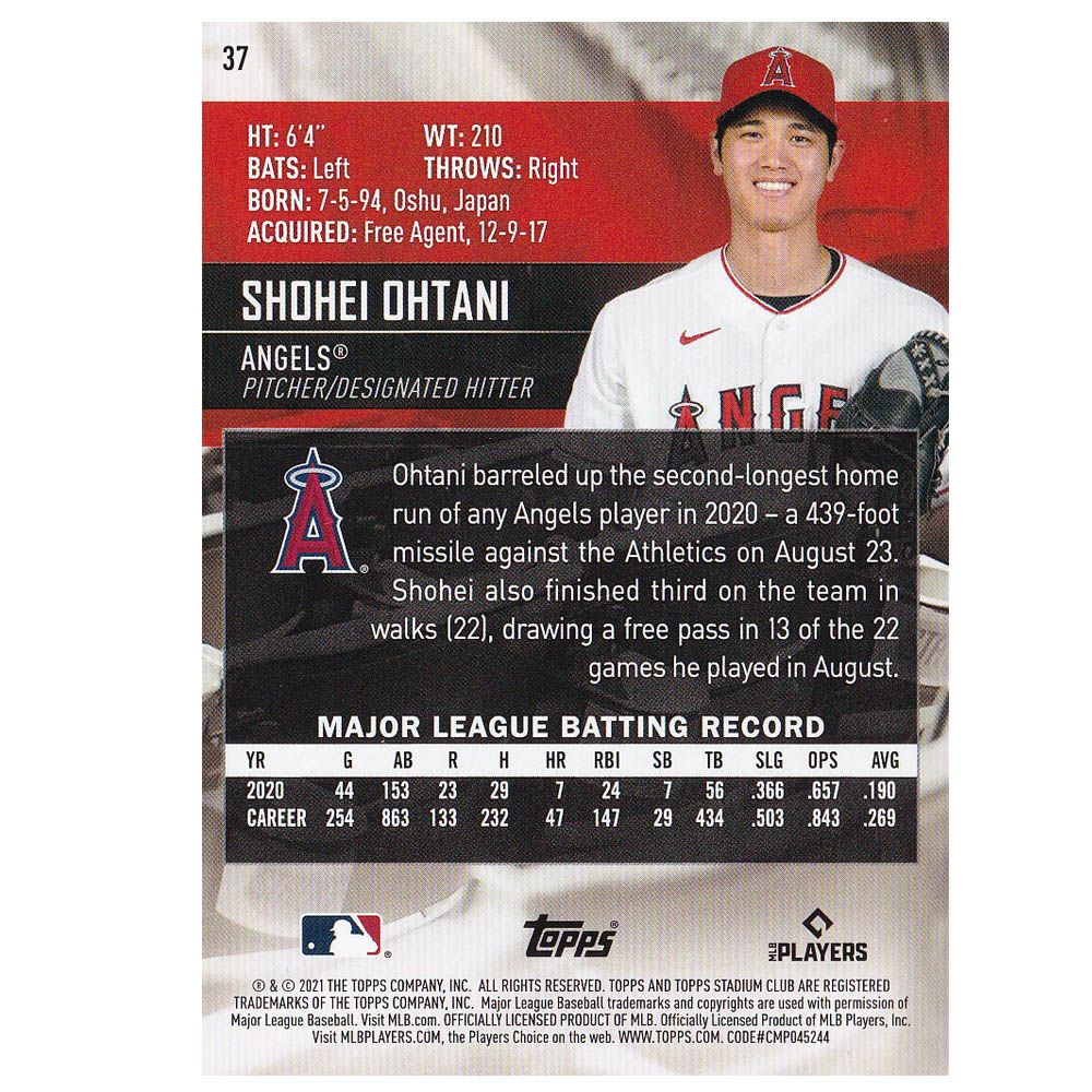 他の画像を見る MLBエンゼルス 大谷翔平選手トレーディングカード MLB 大谷翔平 エンゼルス トレカ トレーディングカード 2021 Stadium Club #37 Topps ¥ 3,300 税込 在庫切れ カートに入れる お気に入りに登録する