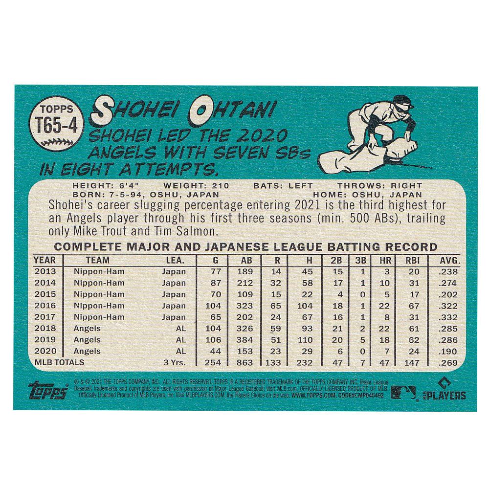 他の画像を見る MLBエンゼルス 大谷翔平選手トレーディングカード MLB 大谷翔平 エンゼルス トレカ トレーディングカード 2021 Series 2 1965 Redux #T65-4 Topps ¥ 3,300 税込 在庫切れ カートに入れる お気に入りに登録する