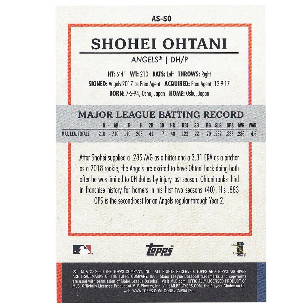 他の画像を見る MLBエンゼルス 大谷翔平選手トレーディングカード MLB 大谷翔平 エンゼルス トレカ トレーディングカード 2020 Topps Choice TC-24 Topps ¥ 3,300 税込 在庫切れ カートに入れる お気に入りに登録する