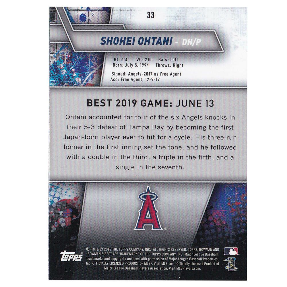 他の画像を見る MLBエンゼルス 大谷翔平選手トレーディングカード MLB 大谷翔平 エンゼルス トレカ トレーディングカード 2019 Bowman's Best Shohei Ohtani Base #33 Topps ¥ 3,300 税込 在庫切れ カートに入れる お気に入りに登録する