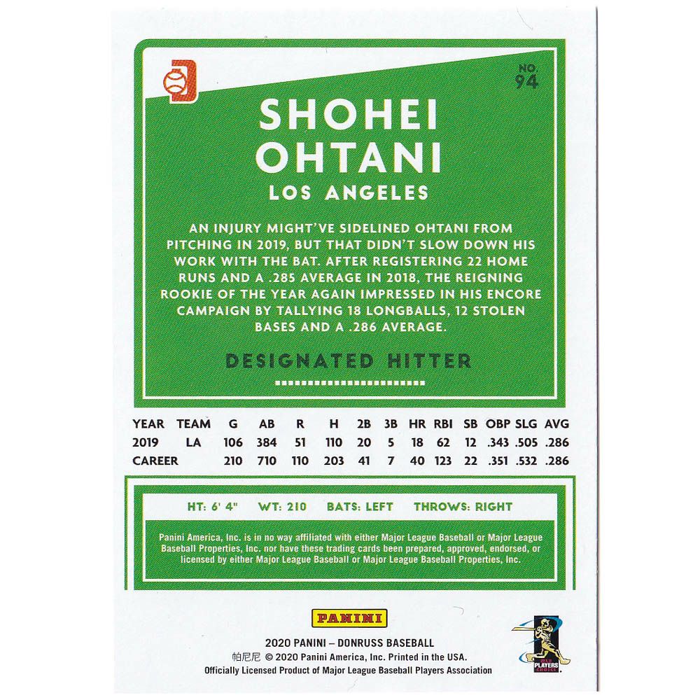 他の画像を見る MLBエンゼルス 大谷翔平選手トレーディングカード MLB 大谷翔平 エンゼルス トレカ トレーディングカード 2020 Donruss #94 Pitching Panini ¥ 3,300 税込 在庫切れ カートに入れる お気に入りに登録する