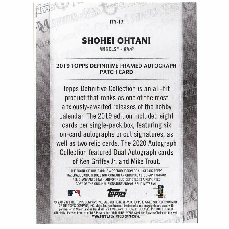 他の画像を見る MLBエンゼルス 大谷翔平選手トレーディングカード MLB 大谷翔平 エンゼルス トレカ トレーディングカード 2021 Series 1 Through The Years Definitive #TTY-17 リプリント Topps ¥ 3,300 税込 在庫切れ カートに入れる お気に入りに登録する
