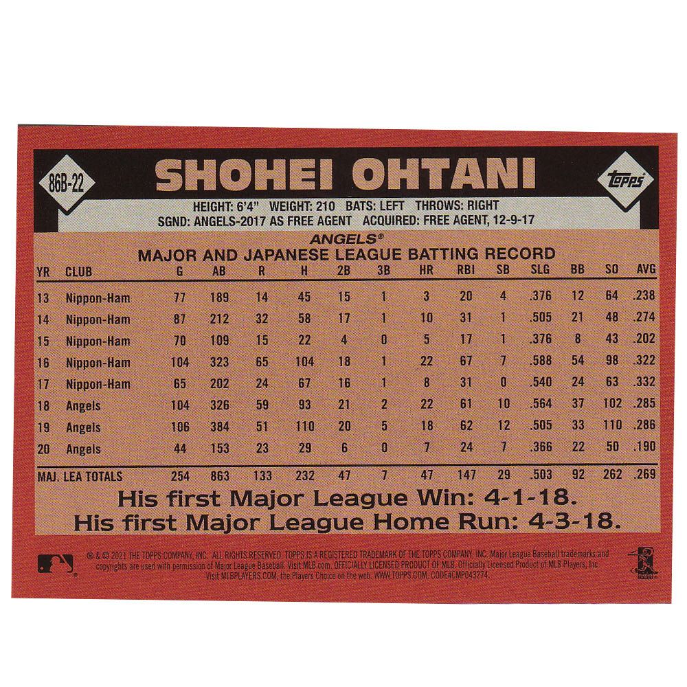 他の画像を見る MLBエンゼルス 大谷翔平選手トレーディングカード MLB 大谷翔平 エンゼルス トレカ トレーディングカード 2021 1986 Topps Baseball 35th Anniversary #86B-22? Topps ¥ 3,300 税込 在庫切れ カートに入れる お気に入りに登録する