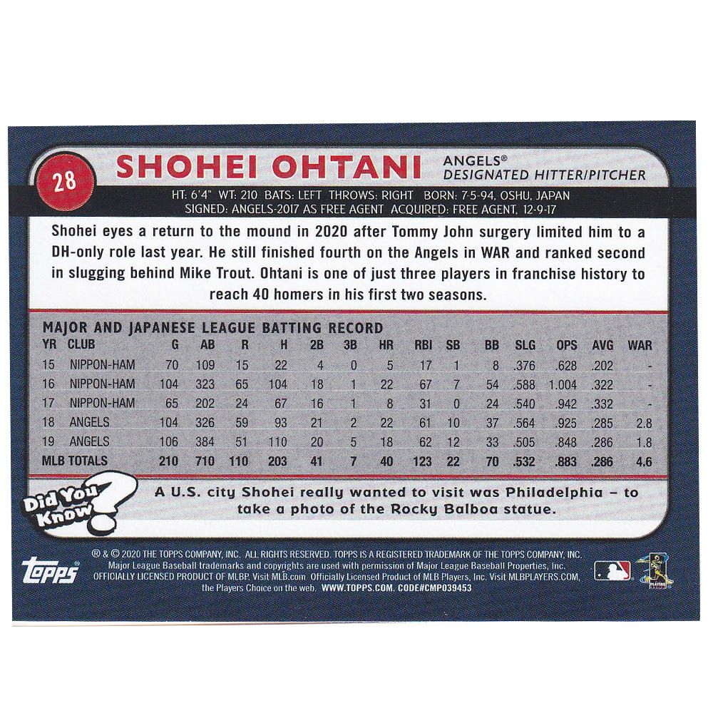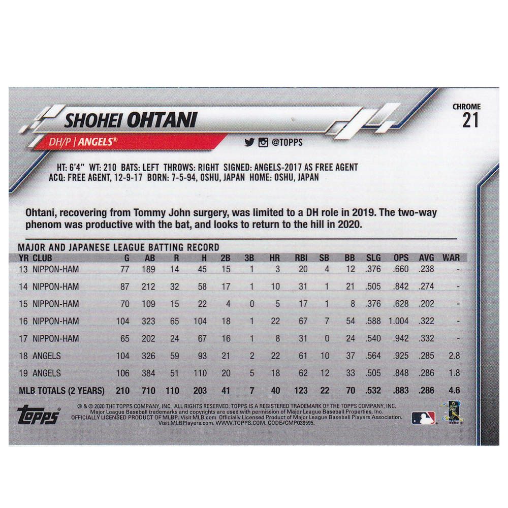 他の画像を見る MLBエンゼルス 大谷翔平選手トレーディングカード MLB 大谷翔平 エンゼルス トレカ トレーディングカード 2020 Bowman Base Card #26? Topps ¥ 3,300 税込 在庫切れ カートに入れる お気に入りに登録する