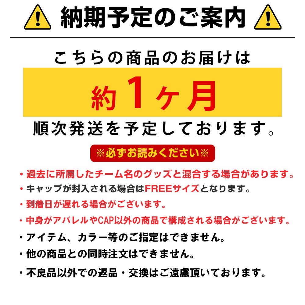 他の画像を見る MLB 2026 開幕記念!MLBチーム福袋 MLB ヤンキース チーム福袋 MLB 2026シーズン開幕記念 2万円 福袋 ¥ 22,000 税込 カートに入れる お気に入りに登録する