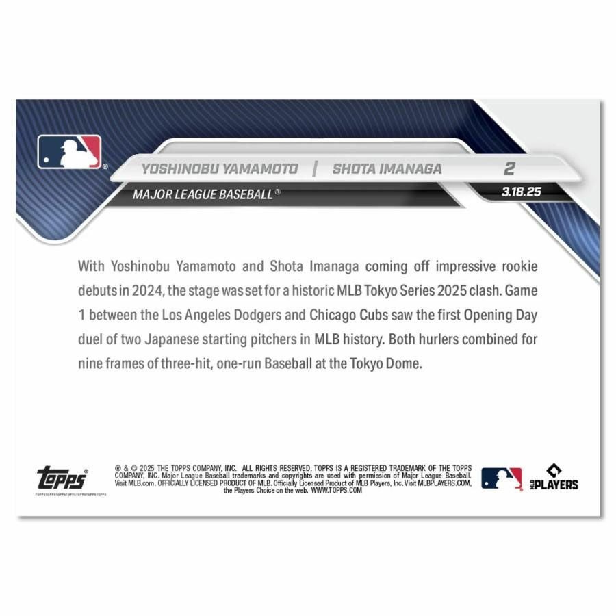 他の画像を見る MLB x Topps 開幕戦 日本人投手対決 記念カード MLB 山本由伸 今永昇太 ドジャース vs カブス トレーディングカード 2025 Topps Now 日本人投手 開幕戦 東京シリーズ2025 Topps ¥ 5,500 税込 カートに入れる お気に入りに登録する