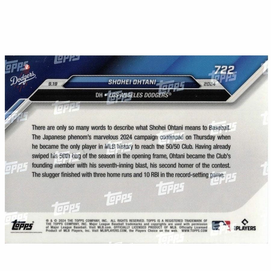 他の画像を見る MLB×Topps Now 大谷翔平 史上初50/50達成記念カード MLB 大谷翔平 ドジャース トレーディングカードボックス 2024 1st Player in MLB History 50/50 #722 Topps Now ¥ 11,000 税込 カートに入れる お気に入りに登録する