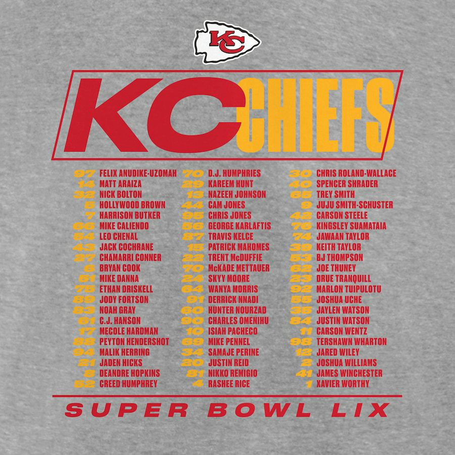 他の画像を見る NFL 2024 チーフス 第59回スーパーボウル進出記念アイテム NFL チーフス Tシャツ 第59回スーパーボウル 進出 Roster T-Shirt Fanatics ヘザーグレー ¥ 14,630 税込 在庫切れ カートに入れる お気に入りに登録する
