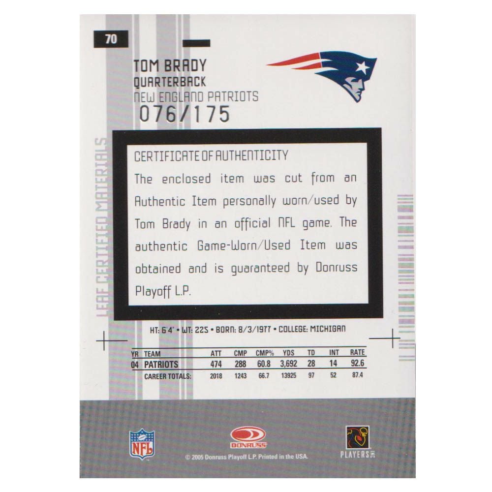 他の画像を見る 激レア!ブレイディ選手のジャージカード! NFL トム・ブレイディ ペイトリオッツ トレーディングカード/スポーツカード 1点物 2005 ジャージ カード (76/175) Donruss ¥ 16,500 税込 在庫切れ カートに入れる お気に入りに登録する